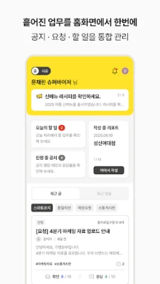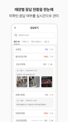 FC다움的核心在于全面提升运营品质与沟通效率。督导人员可在一个应用内集中管理门店请求、巡检工作及日常沟通。通过品牌专属题库发布的测验功能,轻松进行员工培训,自然提升门店服务能力。智能通知确保重要信息精准送达,门店求助功能则为门店提供了一对一的快速响应渠道。此外,FC다움还支持紧急事宜的图文快速上传,并汇集所有最新评论,让总部与门店间的互动清晰可见,确保信息不遗漏。