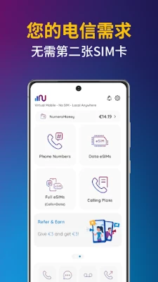 Numero eSIM不仅是连接工具,更是一套智能通讯管家。我们提供一系列高级功能,如个性化语音信箱、呼叫转移,以及使用您的辅助号码进行匿名通话的选项,全方位提升您的通讯体验。对于寻求免费号码的用户,Numero eSIM特设"免费金币中心",让您有机会获取并维持一个免费的美国号码,只需持续收集金币即可。我们深知灵活性的重要性,因此提供1个月、3个月或1年的弹性套餐选择,并默认自动续订,确保服务不间断。此外,别忘了参与我们的推荐计划,分享您的专属链接,在帮助朋友节省开支的同时,您也能获得免费余额,共同体验Numero eSIM带来的智能通讯新篇章。
